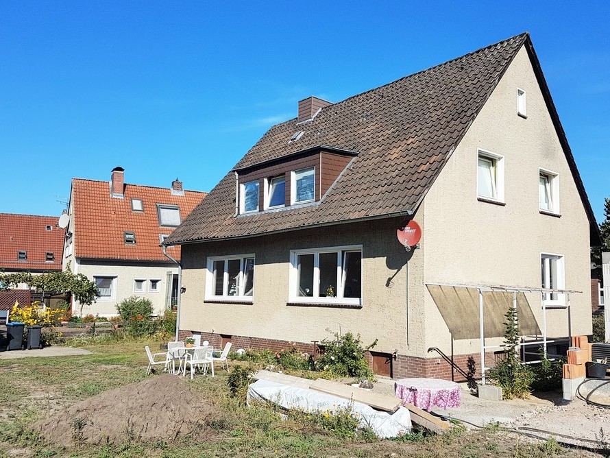 Dieses schöne Ein- bzw. Zweifamilienhaus liegt in einer verkehrsberuhigten und dennoch zentralen Lage von Hambühren. Das massiv gebaute Haus hat über 2 Etagen eine Wohnfläche von ca. 151 m² und steht auf einem schönen ca. 900 m² Naturgrundstück. Der nach Süden ausgerichtete Garten ist mit Bäumen und Sträuchern angelegt und lässt noch Spielraum für eigene Gestaltungswünsche. Über eine kleine Treppe im Eingangsbereich gelangt man ins Haus, von dort aus sich der Flur und die derzeitigen 2 Wohnungen im Erdgeschoss aufteilen. Im Erdgeschoss befindet sich in jeder der beiden Wohnungen, ein helles Wohnzimmer mit anliegendem Schlaf- oder Essbereich. Auch hier sind noch Gestaltungsmöglichkeiten für ein eventuell großen Wohnbereich mit Blick in den sonnigen Garten mit Terrasse. Des Weiteren verfügt jede Wohnung über eine Küche mit Einbauküche und ein Duschbad.